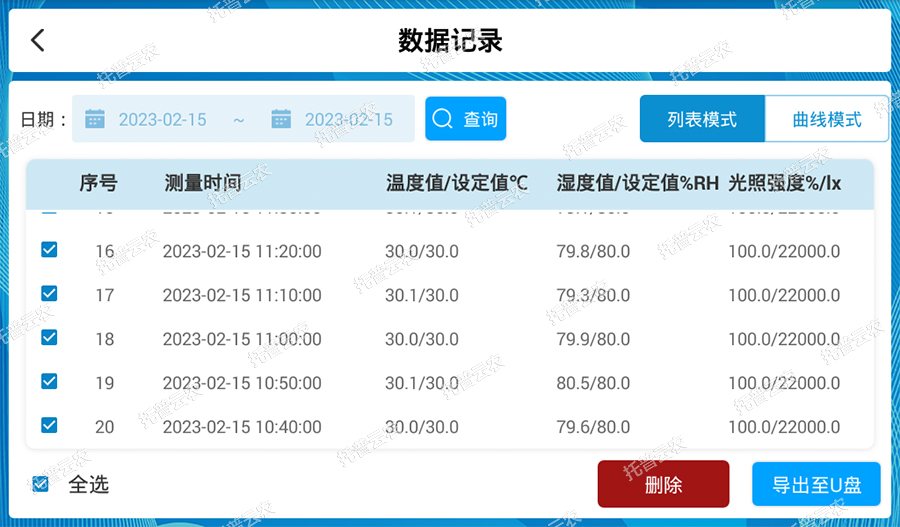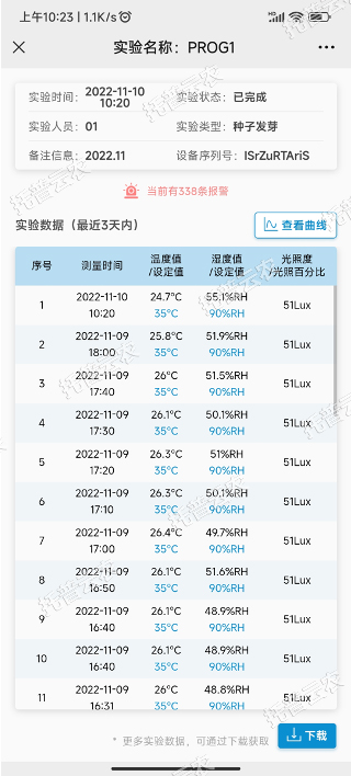 數(shù)據(jù)實時記錄:可查看當前實驗的溫濕度,以及設定值也可查詢歷史記錄。