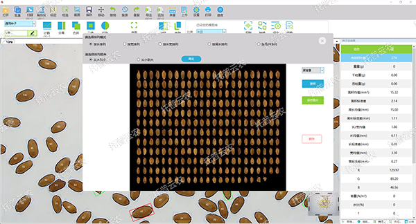 1.種子性狀分析:通過圖像識(shí)別和深度學(xué)習(xí)算法,系統(tǒng)能夠自動(dòng)識(shí)別并分析種子的總數(shù)量、千粒重、百粒重,同時(shí)精確測量每粒種子的長度、寬度、長寬比、面積、周長、直徑等關(guān)鍵參數(shù)。