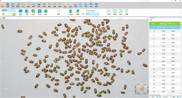 品種對(duì)比功能:系統(tǒng)支持對(duì)不同品種種子的長度和寬度進(jìn)行精確測量,利用先進(jìn)的圖像處理技術(shù),即使微小差異也能被準(zhǔn)確識(shí)別和量化,對(duì)比結(jié)果以矢量圖形式輸出,便于后期查看和編輯。
