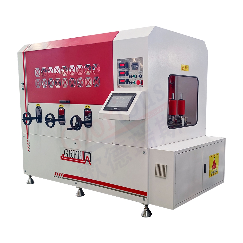 每個(gè)滾壓輪都能獨(dú)立的調(diào)節(jié)(上下、左右),調(diào)節(jié)方式為絲桿調(diào)節(jié)。上滾壓刀由滾輪控制,旋轉(zhuǎn)滾輪,上滾壓刀盤上升或下降,控制上下刀盤之間的間距,對應(yīng)不同高度的隔熱條。旋轉(zhuǎn)機(jī)頭手輪,可以調(diào)節(jié)下滾壓盤高度,對應(yīng)一些錯(cuò)層、異形隔熱條型材的擠壓高度。所有滾壓刀盤可以整體電動升降高度,對應(yīng)不同料高的型材,方便換料。